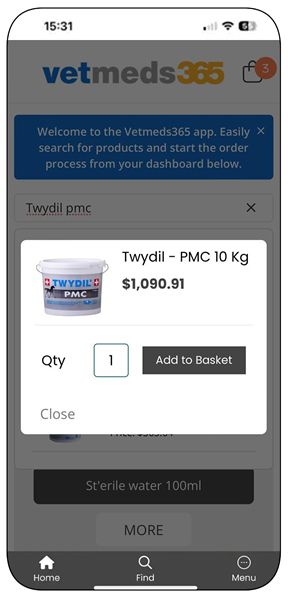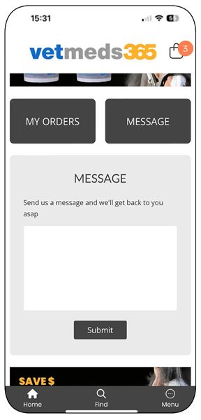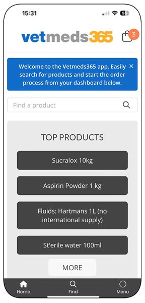 The app provides a personalized experience for each customer, with a custom interface tailored to their order history. Users will enjoy quick and easy access to our full range of products, backed by the support of the Vetmeds team.